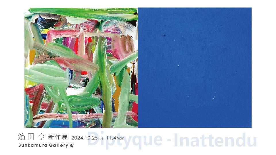 Bunkamura Galleryにて2年ぶりの個展となる本展では、新作を中心に50余点の作品を展示販売。画面を吞み込むかのように縦横無尽に行き交う多彩な色と、泰然自若とした紺碧の奥に潜む鼓動が刻まれたような作品。全く異なったふたつの作品(diptyque)の思いもかけない邂逅(inattendu)で、そこには未知の想像を無限にまで膨らませるような、新たな世界が広がります。既成概念を打ち壊し、ますます自由で鮮やかに広がる濱田亨の新天地をご堪能ください。