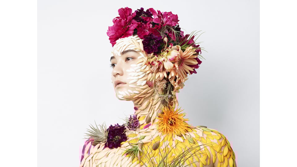 資生堂トップヘア&メーキャップアーティストの計良宏文と華道家であり写真家の勅使河原城一が、花を題材に共作した作品など30点を公開します。