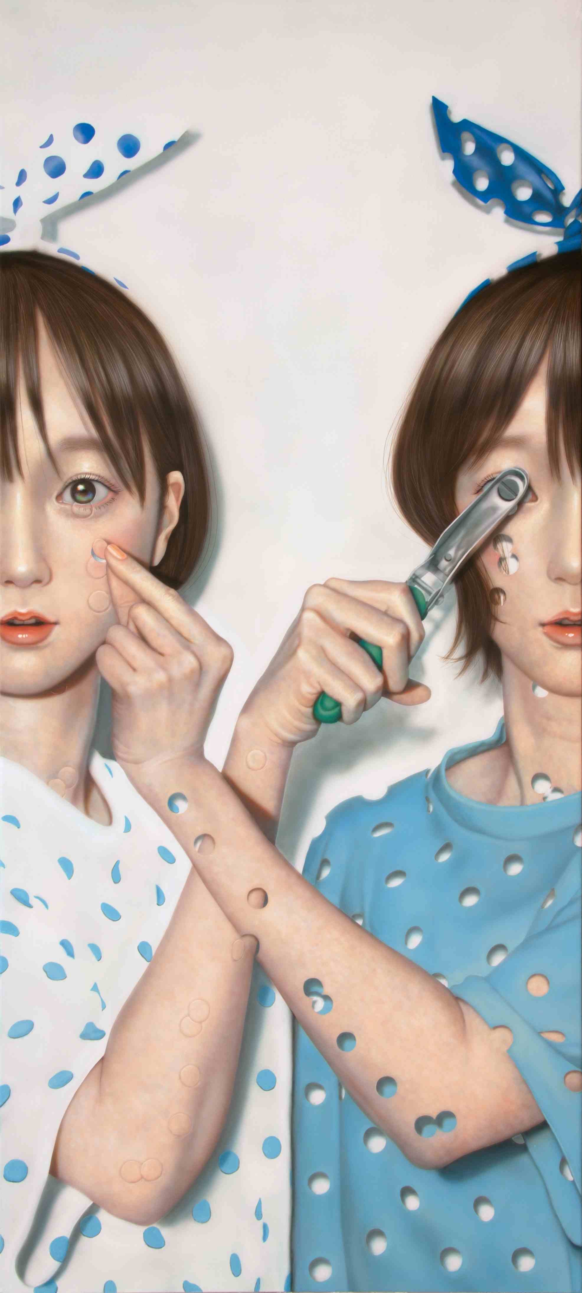 ただのかわいらしい表情をたたえた少女の絵ではなく、坂本が本来持っている詩的解釈が作品の表情を豊かなものにしている。日本サブカルチャーに対する皮肉も込められている。
