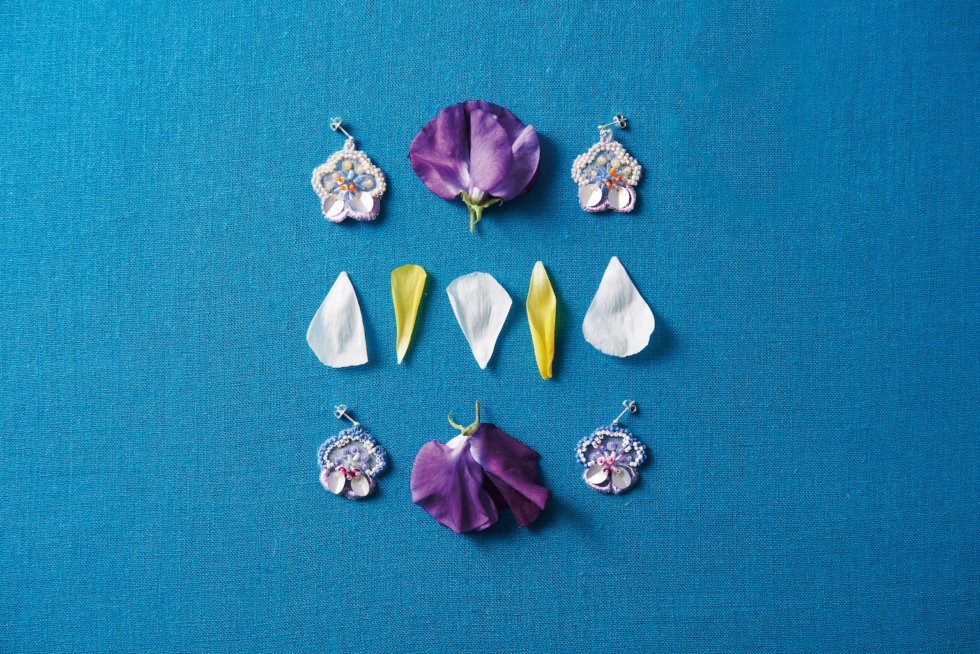 日本の高い職人技術から生まれたビーズと、インドのアトリエの職人によって施されたビーズ刺繍が繊細でとても華やかです。