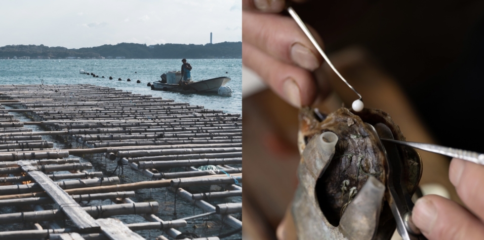 1949年に設立された弥志磨真珠養殖場から始まり、71年には小売部門である「ヤシマ真珠」が設立。伊勢志摩の地で約50年。写真は間崎島(まさきじま)の養殖場の風景と採珠の様子。一粒一粒を丁寧に採珠し選別、加工を行っている。現在は時代のニーズに応えるように、次の世代につげていくためのリ・フォームも積極的に行っています。会期中の8月6日(土)7日(日)には山本行太さんをお招きし真珠のセミオーダー会を開催します。詳しい詳細については下記に記載しています。