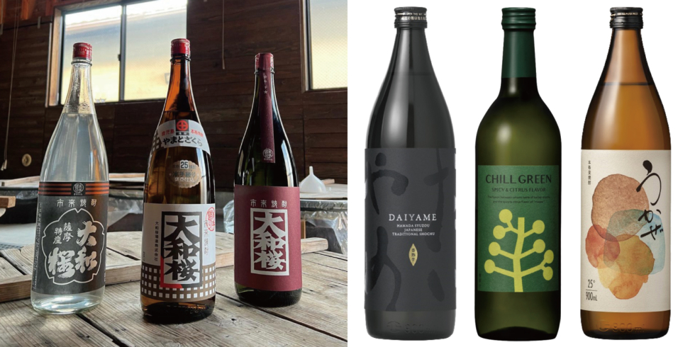 大和桜酒造からは、「大和桜 紅芋」をはじめ、徹幹さんおすすめのラインナップをご用意します。「濵田酒造」からは、「だいやめ」「うかぜ」のほか、新感覚のボタニカル系麦焼酎「CHILLGREEN」などバラエティーに富んだラインナップを複数ご用意いただく予定です。(※写真はイメージです)