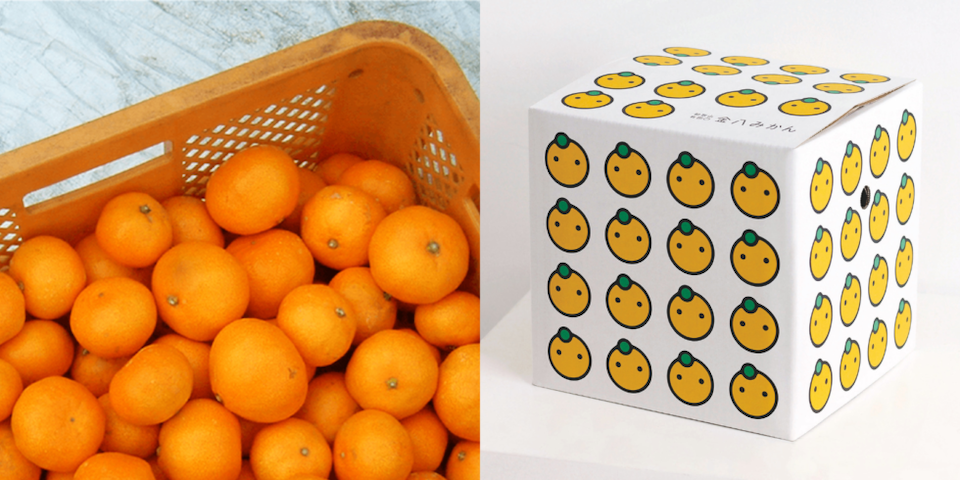食べた後も子供のおもちゃ箱などに使いたくなる”金八みかんダンボール”。思わず人にあげたくなる”おすそわけ袋”、オリジナル熨斗など、「もらって嬉しい、贈って嬉しい」工夫がつまったパッケージデザインは、2010年にグッドデザイン賞を受賞。