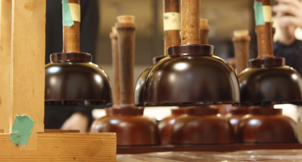 浄法寺産の漆を使って、内側の上塗りを体験。