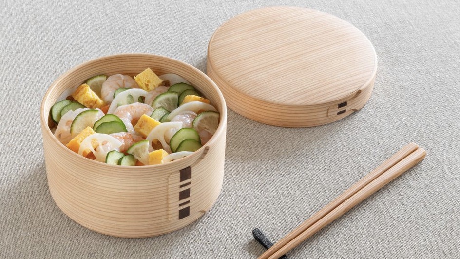 秋田杉で作られた曲げわっぱの表面には、無数の小さな穴があり、自然な調湿作用があります。その働きによって、ご飯の余分な蒸気を逃がし、時間が経ってもふっくらとした状態を保ってくれます。また、杉ならではのやさしい香りを感じながら、毎日のお弁当の時間を楽しくしてくれる道具でもあります。
