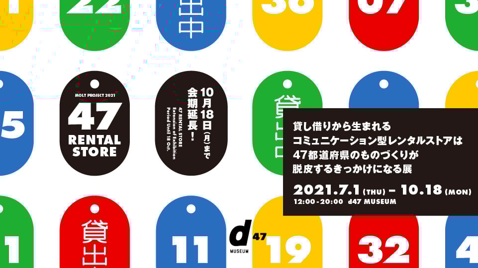 ロフトワークとd47 MUSEUMが共同で、ものづくりが「MOLT=脱皮する」ための成長プログラム「MOLT PROJECT」を企画しました。そこで今回、そのプロジェクトの軸となる「レンタルから生まれるコミュニケーション」をテーマにすえた企画展「47 RENTAL STORE」を開催します。