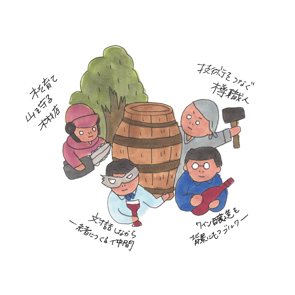 「JUNTO」はブルワリーから半径20km圏内でつくる樽を使い、仲間と味をつくったビール。樽の材料のミズナラ、加工する木材店、木樽職人も全て同じ地域にあり、醸造を通して地域循環を楽しくつくろうとする同じ志を持った奇跡のようなメンバーが集合。木彫の町にとっても、木樽づくりにより木工技術の道具や技術が残ることに繋がっている。
