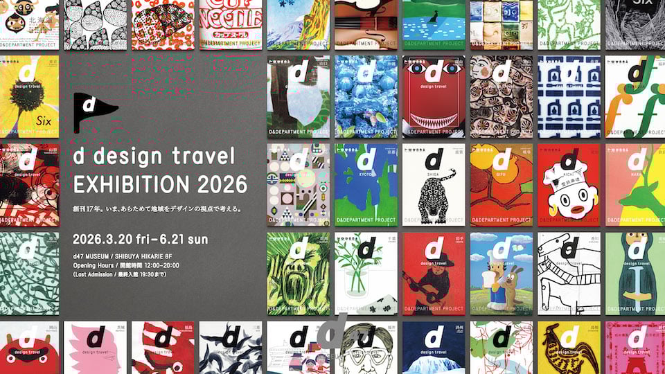 入館料|ドネーション形式(会場受付) 自由にご入館いただけます。お帰りの際に、みなさんのお気持ちをお寄せください。ご寄付いただいたお金は、D&DEPARTMENTのロングライフデザインの活動資金として大切に使わせていただきます。 主催|D&DEPARTMENT PROJECT 特別協賛| 東急株式会社、Creative Space 8/ ※ミュージアムの最終入館は閉館の30分前ですが、館内ショップは以降もご入店可能です。営業終了は20:00です。 ※イベント内容は予告なく変更になる場合もございます。最新情報はウェブサイトや SNSにてご確認ください。 お問い合わせ|03-6427-2301(d47 MUSEUM) D&DEPARTMENT webサイト→ d design travel EXHIBITION 2026 |
