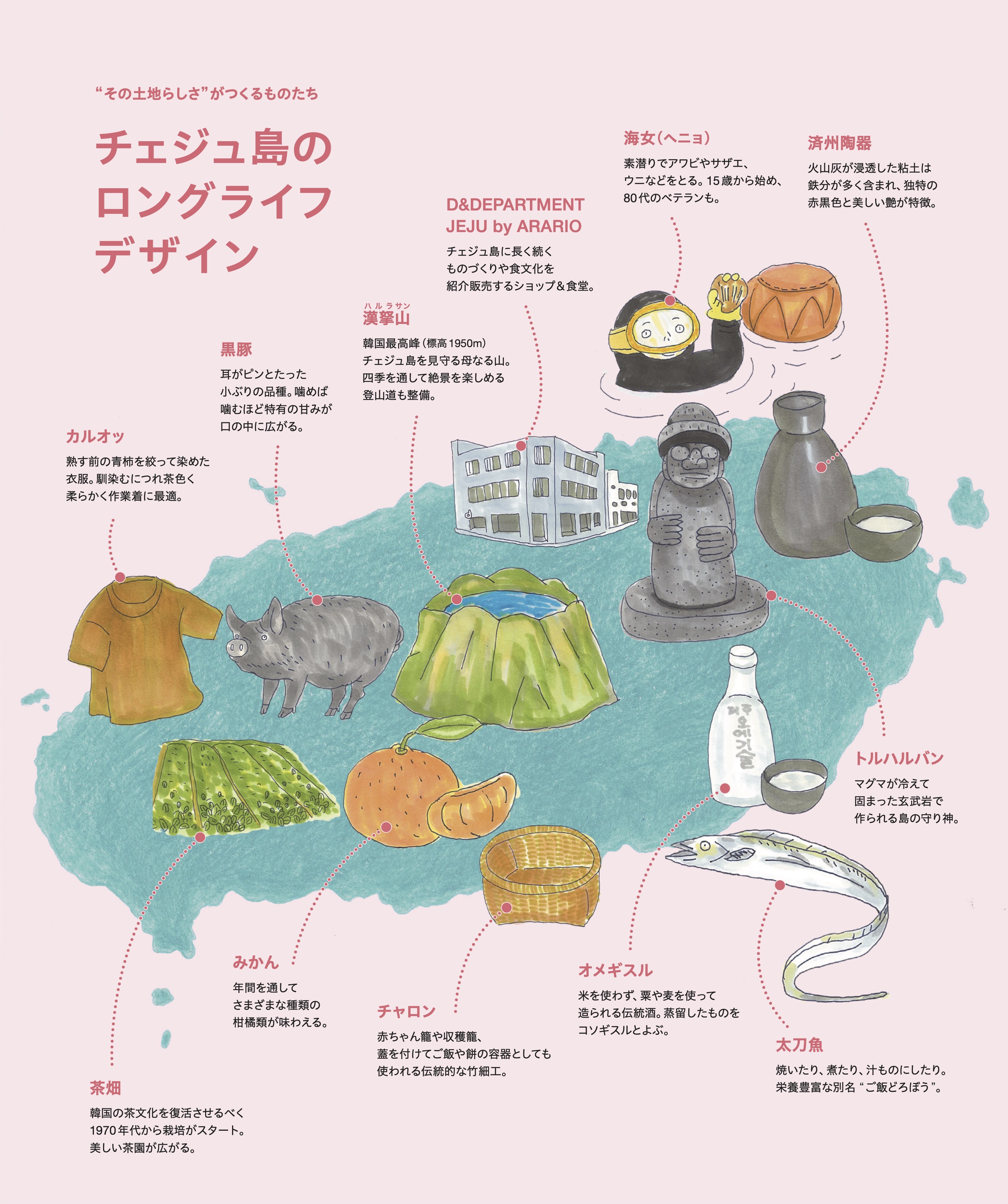 2020年、チェジュ島にD&DEPARTMENT JEJU by ARAIOが誕生しました。体験型宿泊施設を併設した拠点で、飲食・物販・観光などを通して、チェジュ島ならではのロングライフデザインを発掘し、紹介する活動を展開しています。