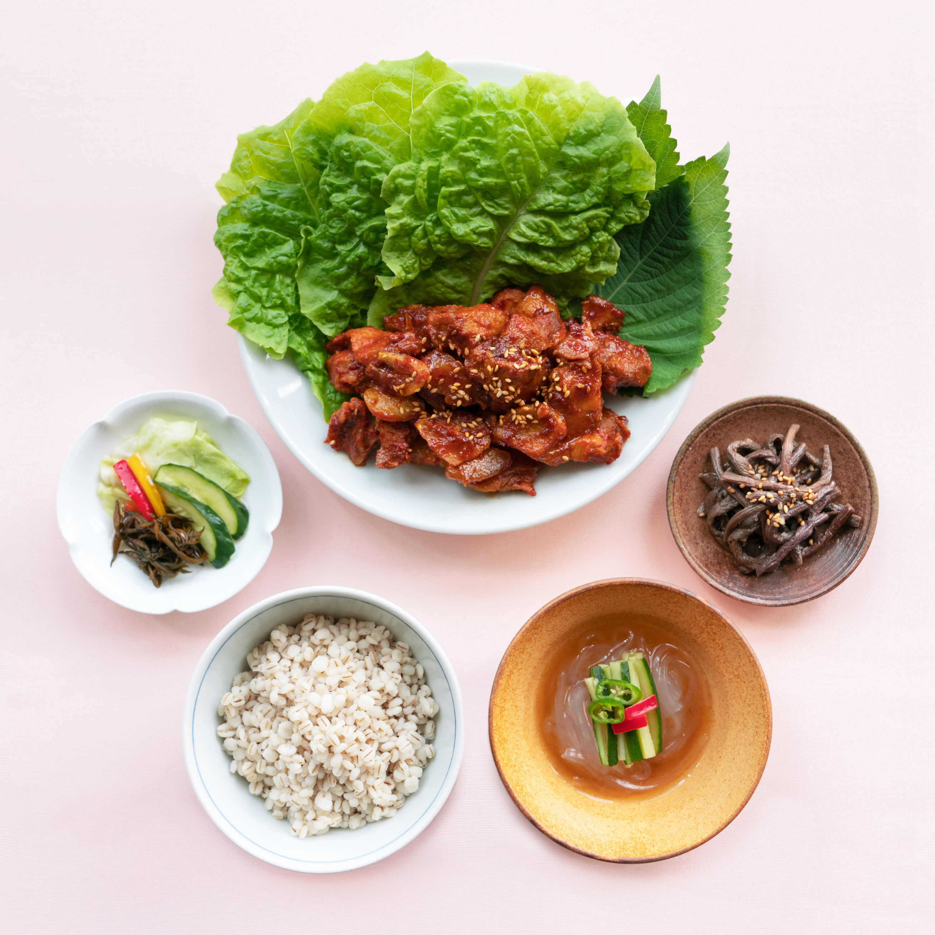 今回、チェジュ店と協力し、地域の暮らしや食文化を学びながら、「チェジュ島定食」を開発しました。