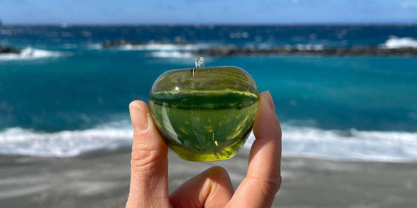 日本で唯一、新島でしか採掘されないコーガ石が原料のガラス。硬質で透明度が高く、優しいオリーブ色が特徴です。火山の噴火によって形成された島ならではの歴史と、自然環境から生まれました。1988年の創立以来、新島ガラスの魅力を世界に発信する新島ガラスアートセンターの活動と、そこで製造されるガラス製品をご紹介します。