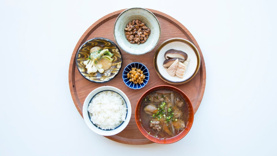 | 水増 八天狗定食 1,550円 水増(みずまさり)集落に人知れず続いてきた幻の在来種大豆「八天狗」。大豆本来の味をしっかりと味わえる納豆、郷土料理の座禅豆、八天狗の味噌でノビルを酢味噌和えにして。水増産筍の煮しめ、親鶏の旨みたっぷりの鶏汁。自然栽培「にこまる」の五分撞き米。