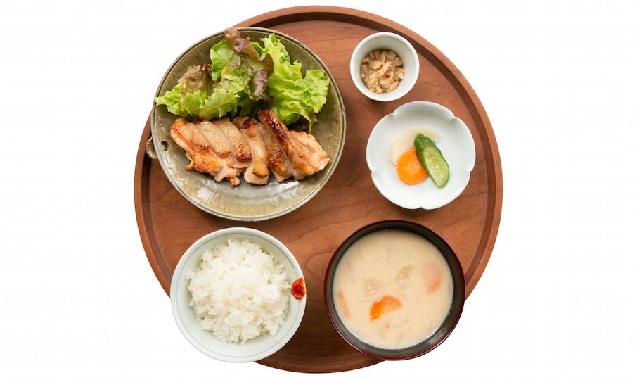 Fermentation Tourism Nippon 関連メニュー 麹づくし定食 1,680円 手づくりトマト塩麹に漬け込んだ、ジューシーな鶏肉、青森に伝わる二次発酵納豆「ごど」、「三五八漬け」、寺田本家の酒粕で作った「白味噌粕汁」、新潟の発酵調味料「かんずり」。麹の様々なバリエーションを楽しめます。