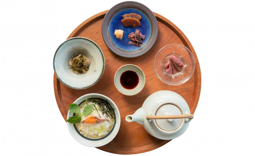 Fermentation Tourism Nippon 関連メニュー 珍味づくし定食 1,680円 長野・木曾に伝わる漬け汁だけで発酵させる「すんき」、熊本・阿蘇のずいきを発酵させた「あかど漬」、佐賀・鯨の顎の軟骨の酒粕漬「松浦漬」、「奈良漬」、「しば漬け」、滋賀の琵琶湖の伝統料理「鮒寿司」の茶漬。お酒と一緒に召し上がるのもおすすめ。