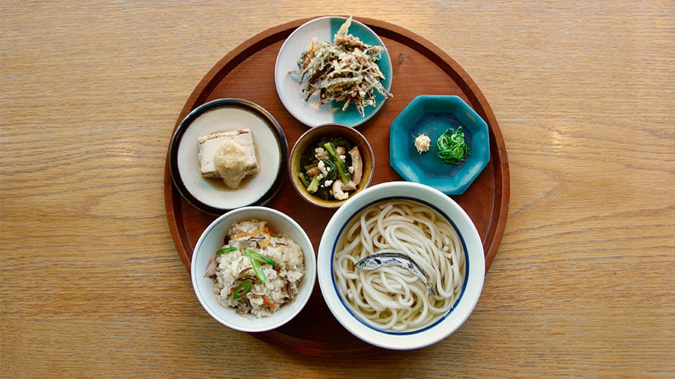 実際に現地で教わった郷土料理や、その土地で長く伝わる知恵の詰まった料理を、定食にしてご提供しています。季節を伝えるデザートやドリンクもご用意しています。生産者や器の作り手の想いものせて、お楽しみいただければ幸いです。
