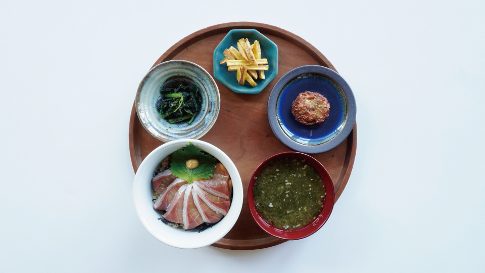 実際に現地で教わった郷土料理や、その土地で長く伝わる知恵の詰まった料理を、定食にしてご提供しています。季節を伝えるデザートやドリンクもご用意しています。生産者や器の作り手の想いものせて、お楽しみいただければ幸いです。