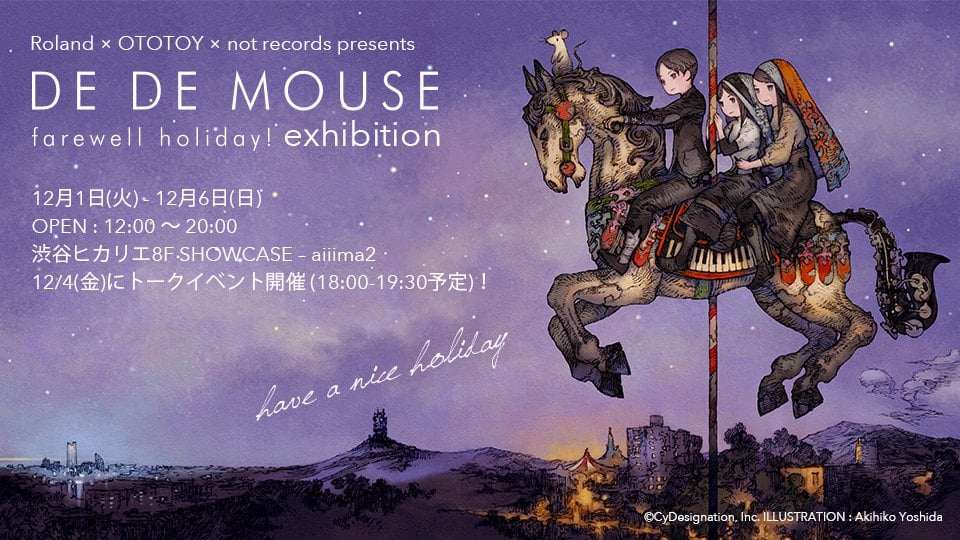 12/2に3年ぶりとなる5thアルバム「farewell holiday!」をリリースするDE DE MOUSEが、アルバムリリースを記念し、リリース週となる12/1-12/6に、aiiima 2にて企画展を開催!