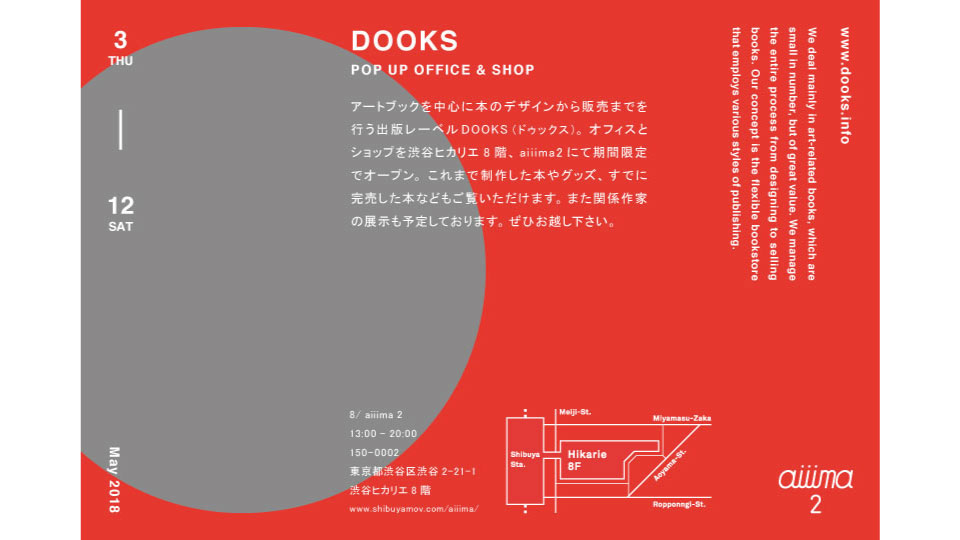 アートブックを中心に本のデザインから販売までを行う出版レーベルDOOKS(ドゥックス)。オフィスとショップを、aiiima2にて期間限定でオープン。