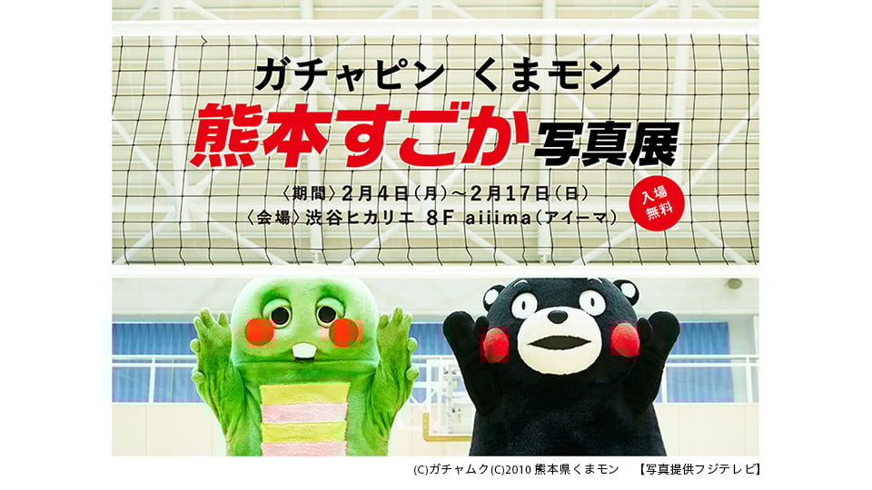 この度、そのくまチャピンがくまモンと一緒に、スポーツに熱中する熊本県民の皆様と触れ合う様子を通じて熊本の元気な"今"を発信する「ガチャピンくまモンの熊本すごか写真展」を、2月4日(月)~2月17日(日)に渋谷ヒカリエ8F「aiiima1」にて開催します。