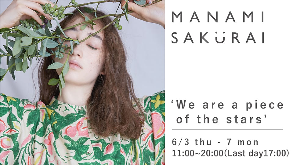 MANAMI SAKURAIIは「ピースフルなメッセージをテキスタイルにのせて贈る」をコンセプトにオリジナルテキスタイルを服に仕立て発表しています。まるで絵そのままを身に纏う様な洋服達、ぜひ会いにいらしてください。