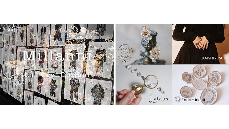 /インスタレーション:展示会場を背景にモデルによる公開ルック撮影。どなた様もご自由にご覧いただけますが、通路側からの見学となります。展示会場へは17:30以降ご入場いただけます。
