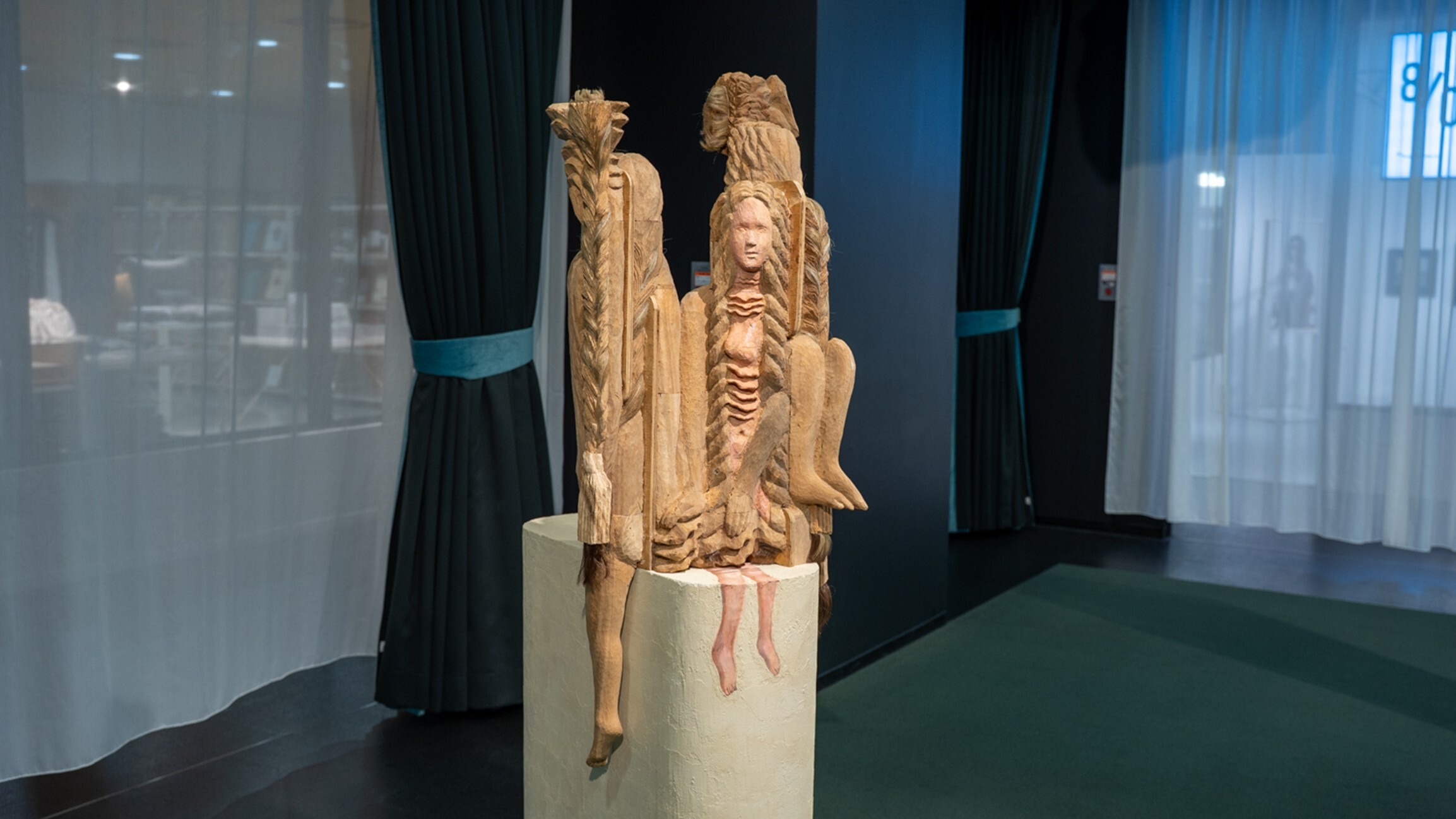 日本における木彫は、神像や仏像などの彫刻に加え、木造建築や装飾などに用いられ、その伝統的な技法が今に受け継がれ、現代においても重要な表現方法として進化し続けています。本企画展では、現代美術における木彫表現方法の可能性について、彫刻家として活躍する三沢厚彦氏が特に注目する3名の若手木彫作家(中澤瑞季さん、成島麻世さん、古西穂波さん)を選出し展示されました。