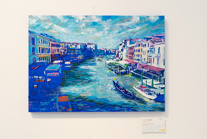 これら、旅の途中に描かれたスケッチや写真を重ね合わせながら、アクリル絵の具を用いつつ油絵のような質感を出すための工夫や、油性色鉛筆なども併用し、作品が描かれていきます。そして、ファーストピクチャーとして購入しやすいお手頃な価格で販売しているのも、嬉しいところ。