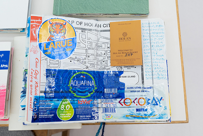 これらの“青の世界”が生まれる全ての源は、旅を記録したスクラップブックです。